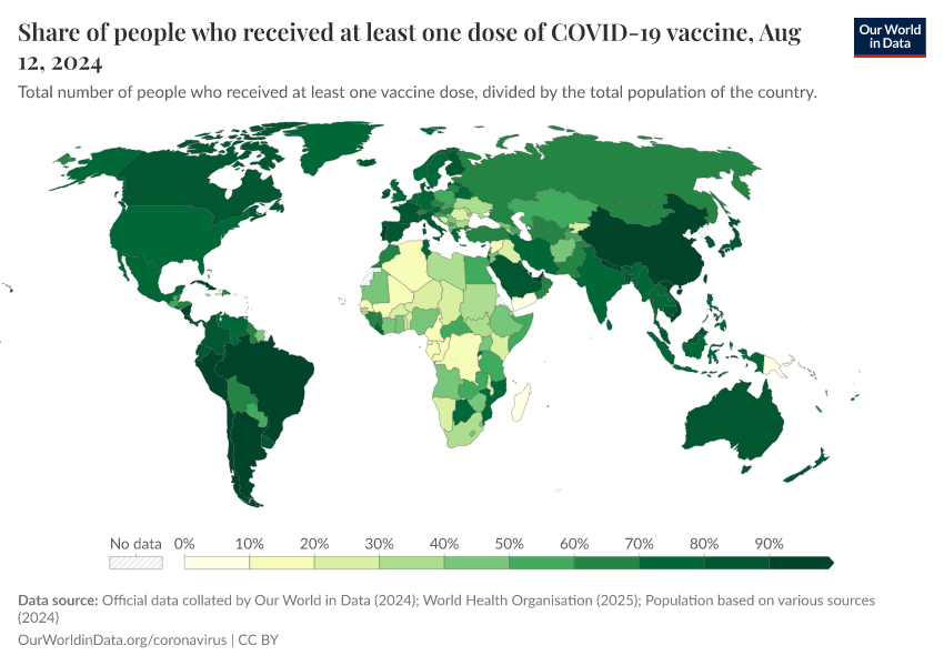 Edouard Mathieu, Hannah Ritchie, Lucas Rodés-Guirao, Cameron Appel, Daniel Gavrilov, Charlie Giattino, Joe Hasell, Bobbie Macdonald, Saloni Dattani, Diana Beltekian, Esteban Ortiz-Ospina, and Max Roser (2020) - “Coronavirus (COVID-19) Vaccinations” Published online at OurWorldinData.org. Retrieved from: 'https://gdocs-bespoke-component.owid.pages.dev/covid-vaccinations' [Online Resource]BibTeX citation