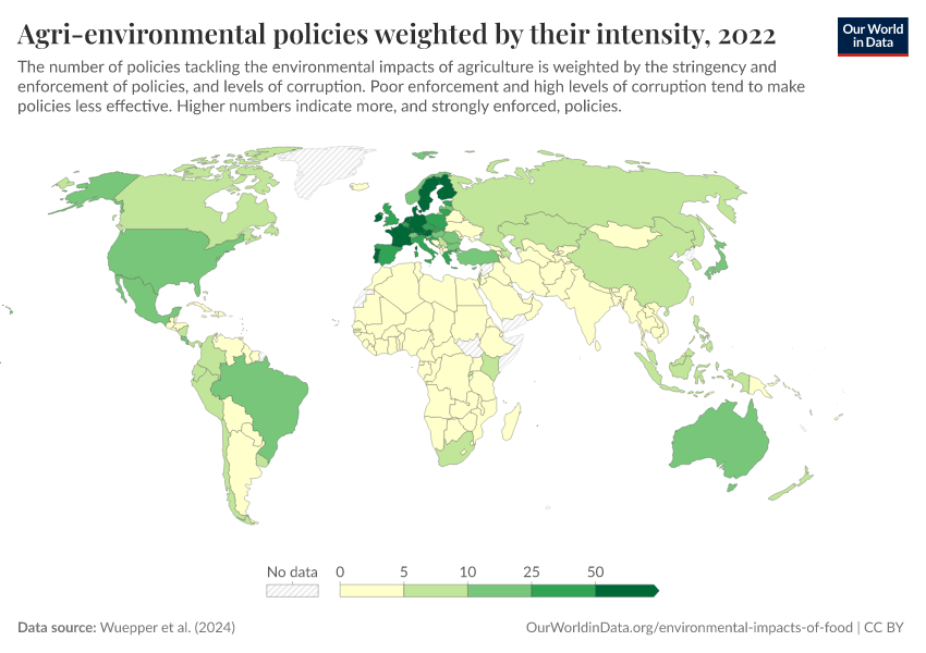 Hannah Ritchie (2024) - “How effective are policies in reducing the environmental impacts of agriculture?” Published online at OurWorldinData.org. Retrieved from: 'https://gdocs-bespoke-component.owid.pages.dev/effective-policies-reducing-environmental-impacts-agriculture' [Online Resource]BibTeX citation