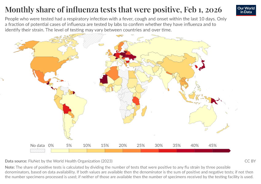 Explore global data produced by the World Health Organization on influenza symptoms and cases.