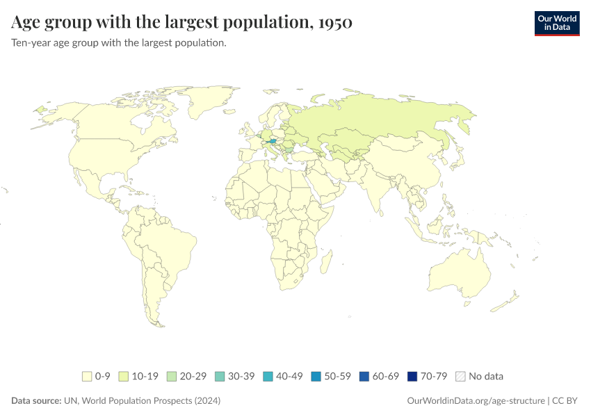 “Data Page: Ten year age-group with the highest population”. Our World in Data (2026). Data adapted from United Nations. Retrieved from https://gdocs-bespoke-component.owid.pages.dev/grapher/age-group-with-the-largest-population [online resource]How to cite this data