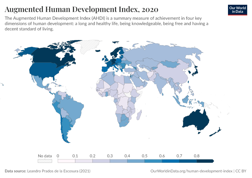 Leandro Prados de la Escosura (2021) – with minor processing by Our World in Data. “Augmented Human Development Index” [dataset]. Leandro Prados de la Escosura, “Augmented Human Development Index (AHDI) - Country data”; Leandro Prados de la Escosura, “Augmented Human Development Index (AHDI) - Regional data” [original data]. Retrieved March 11, 2026 from https://gdocs-bespoke-component.owid.pages.dev/grapher/augmented-human-development-index