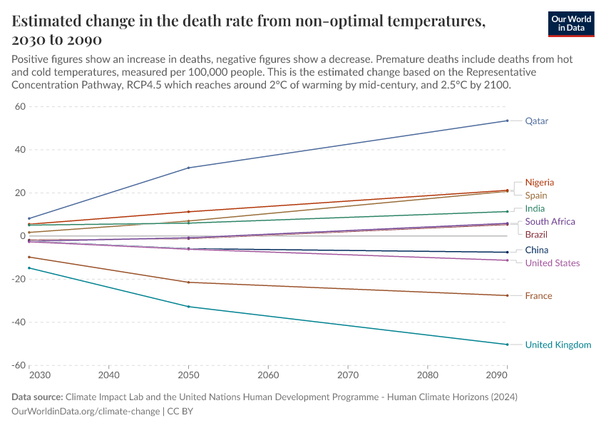 “Data Page: Estimated change in the death rate from non-optimal temperatures”. Our World in Data (2026). Data adapted from Climate Impact Lab and the United Nations Human Development Programme. Retrieved from https://gdocs-bespoke-component.owid.pages.dev/grapher/change-heat-death-rate [online resource]How to cite this data