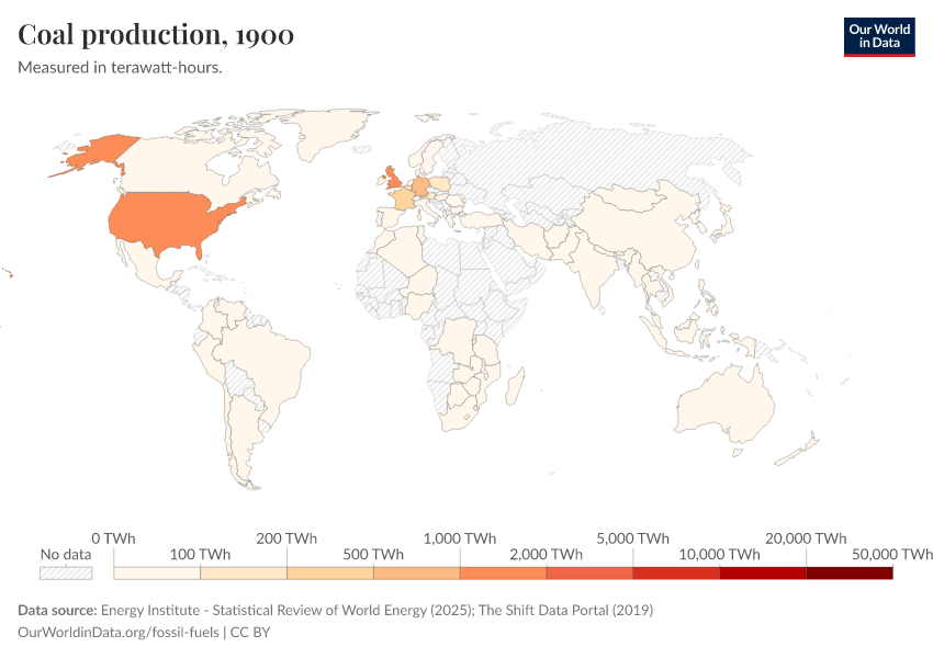 “Data Page: Coal production”, part of the following publication: Hannah Ritchie, Pablo Rosado, and Max Roser (2023) - “Energy”. Data adapted from Energy Institute, The Shift Data Portal. Retrieved from https://gdocs-bespoke-component.owid.pages.dev/grapher/coal-production-by-country [online resource]How to cite this data