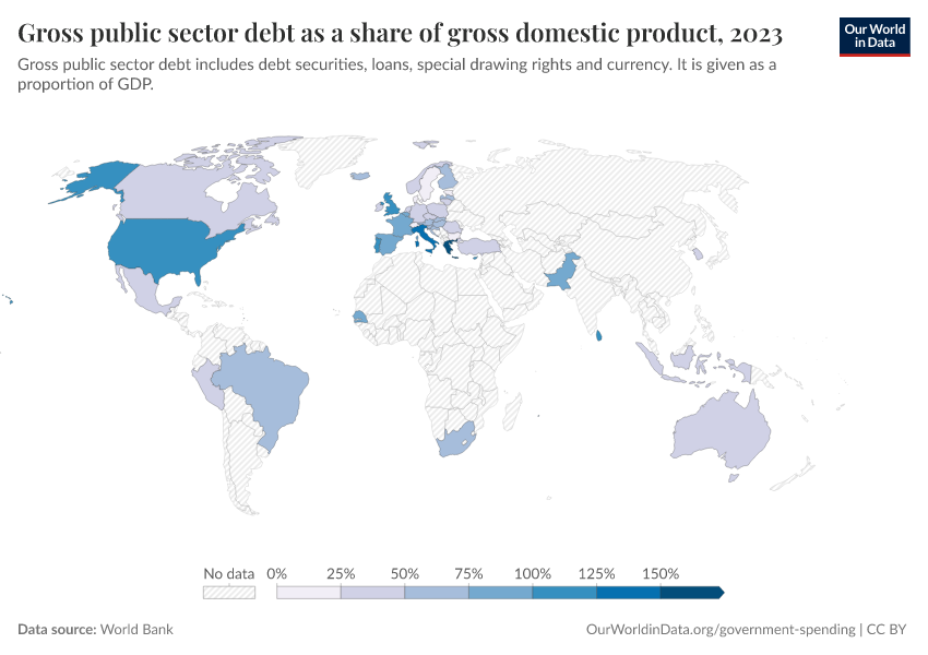 “Data Page: Gross public sector debt as a share of gross domestic product”. Our World in Data (2026). Data adapted from World Bank. Retrieved from https://gdocs-bespoke-component.owid.pages.dev/grapher/gross-public-sector-debt-as-a-proportion-of-gdp [online resource]How to cite this data