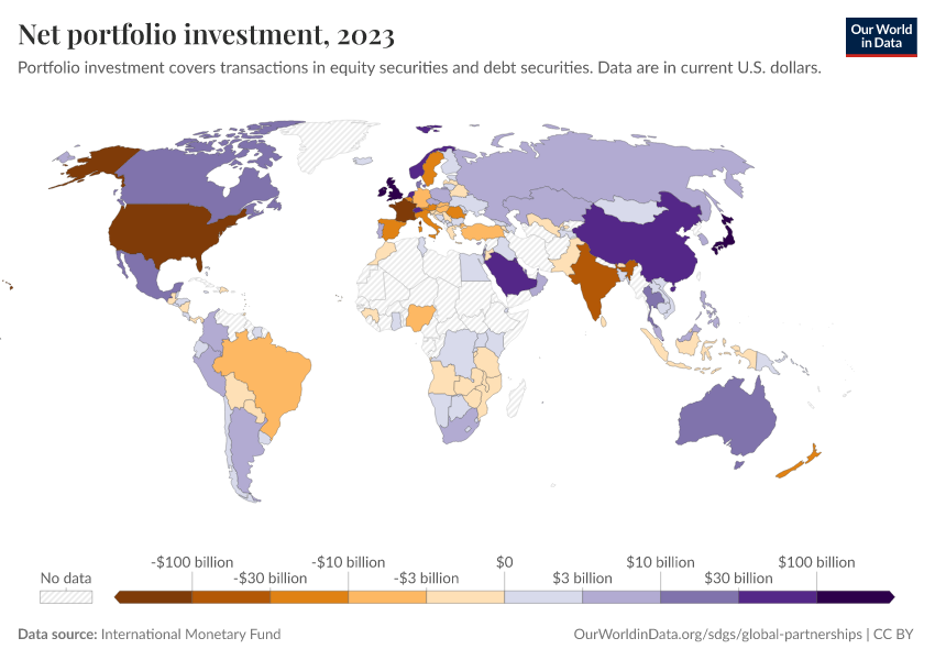 International Monetary Fund – processed by Our World in Data. “Net portfolio investment” [dataset]. International Monetary Fund, “International Monetary Fund, Balance of Payments Statistics Yearbook and data files.” [original data]. Retrieved March 11, 2026 from https://gdocs-bespoke-component.owid.pages.dev/grapher/net-portfolio-investment