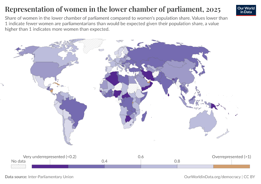 “Data Page: Representation of women in the lower chamber of parliament”. Our World in Data (2026). Data adapted from Inter-Parliamentary Union. Retrieved from https://gdocs-bespoke-component.owid.pages.dev/grapher/representation-of-women-in-lower-chamber-of-parliament [online resource]How to cite this data