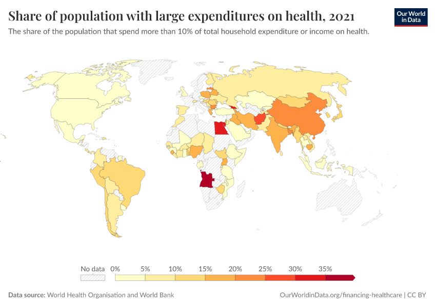 “Data Page: Share of population with large expenditures on health”. Our World in Data (2026). Data adapted from World Health Organisation and World Bank. Retrieved from https://gdocs-bespoke-component.owid.pages.dev/grapher/share-of-population-with-large-household-expenditures-on-health-10pc [online resource]How to cite this data