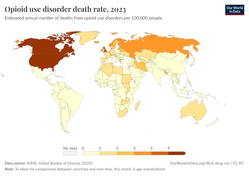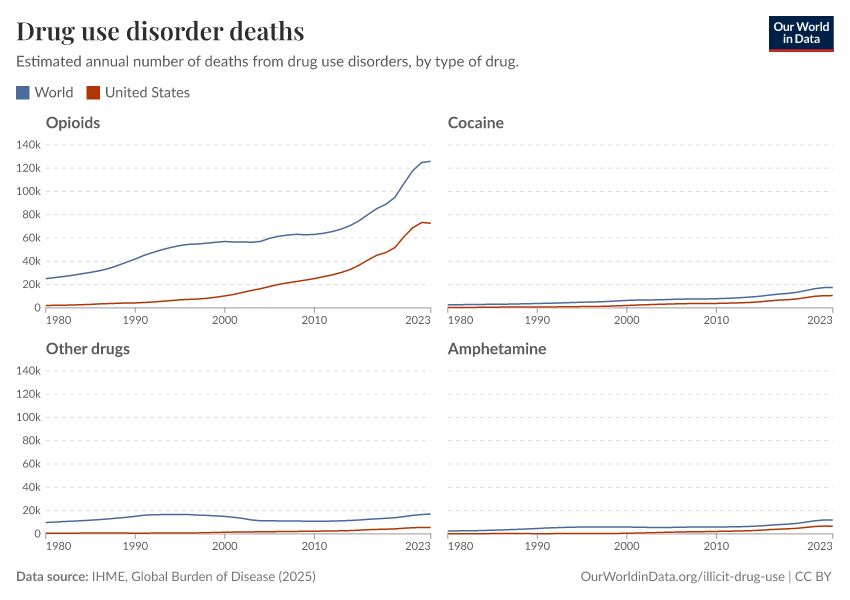 Hannah Ritchie, Pablo Arriagada, and Max Roser (2022) - “Opioids, Cocaine, Cannabis, and Other Illicit Drugs” Published online at OurWorldinData.org. Retrieved from: 'https://gdocs-bespoke-component.owid.pages.dev/illicit-drug-use' [Online Resource]BibTeX citation