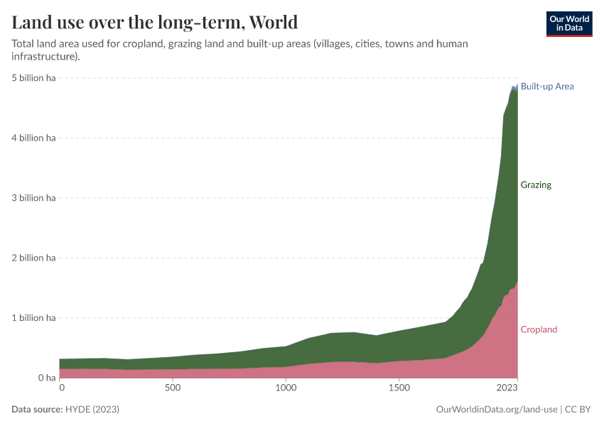 Hannah Ritchie and Max Roser (2019) - “Land Use” Published online at OurWorldinData.org. Retrieved from: 'https://gdocs-bespoke-component.owid.pages.dev/land-use' [Online Resource]BibTeX citation