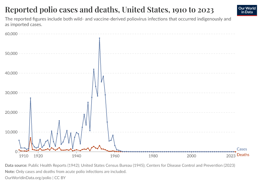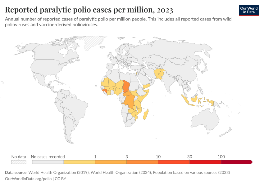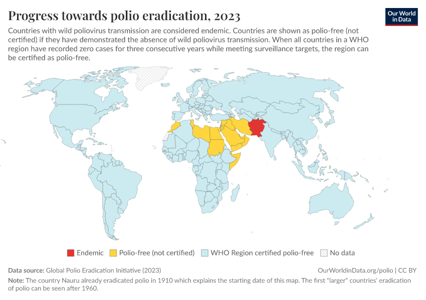 Saloni Dattani, Fiona Spooner, Sophie Ochmann, and Max Roser (2022) - “Polio” Published online at OurWorldinData.org. Retrieved from: 'https://gdocs-bespoke-component.owid.pages.dev/polio' [Online Resource]BibTeX citation