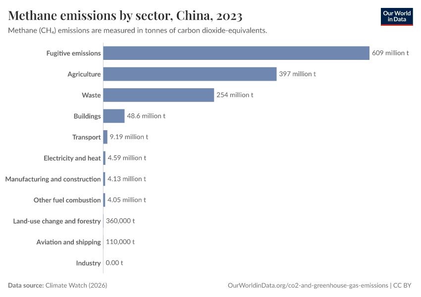 Methane: how much does the average person in China emit? Where do emissions come from?