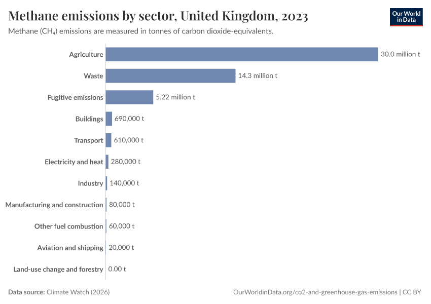 Methane: how much does the average person in the United Kingdom emit? Where do emissions come from?