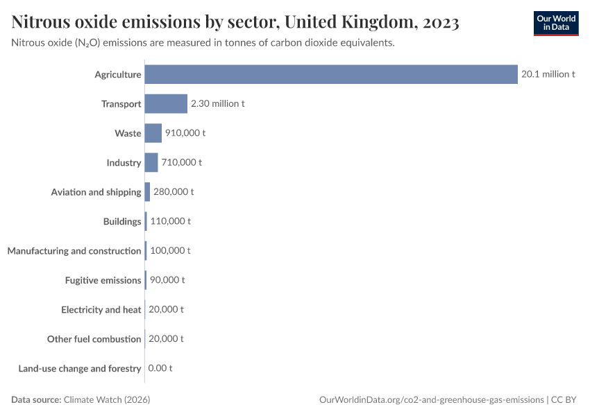 Nitrous oxide: how much does the average person in the United Kingdom emit? Where do emissions come from?