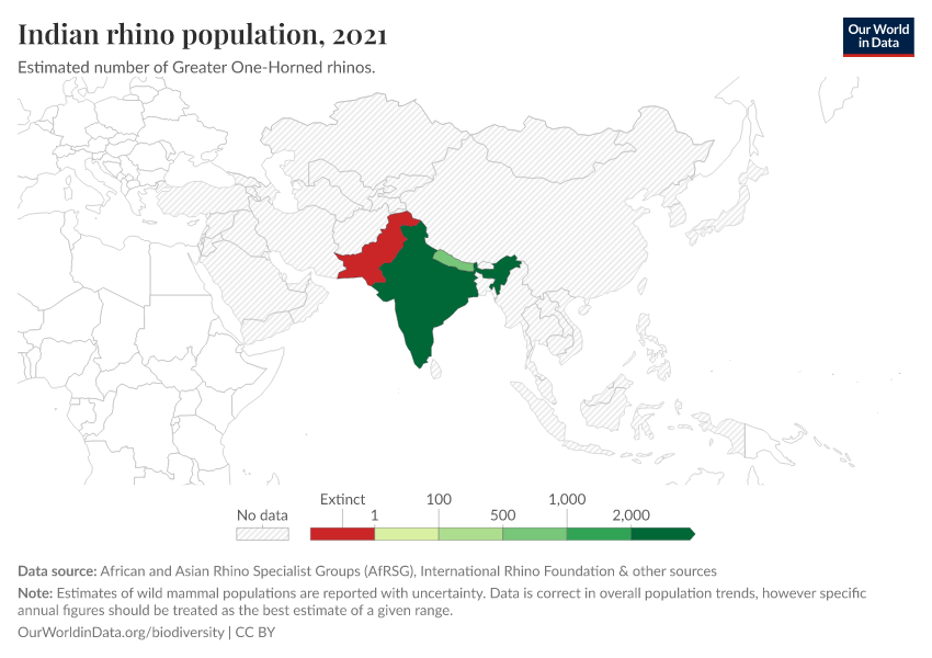 Hannah Ritchie (2022) - “The state of the world's rhino populations” Published online at OurWorldinData.org. Retrieved from: 'https://gdocs-bespoke-component.owid.pages.dev/rhino-populations' [Online Resource]BibTeX citation