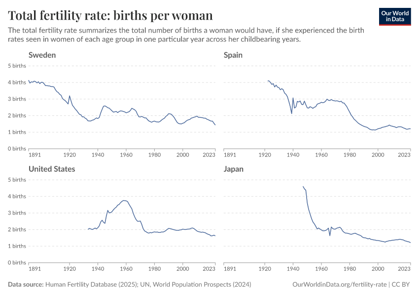 Saloni Dattani and Lucas Rodés-Guirao (2025) - “Why the total fertility rate doesn’t necessarily tell us the number of births women eventually have” Published online at OurWorldinData.org. Retrieved from: 'https://gdocs-bespoke-component.owid.pages.dev/total-fertility-rate-births-per-woman' [Online Resource]BibTeX citation