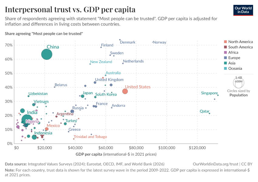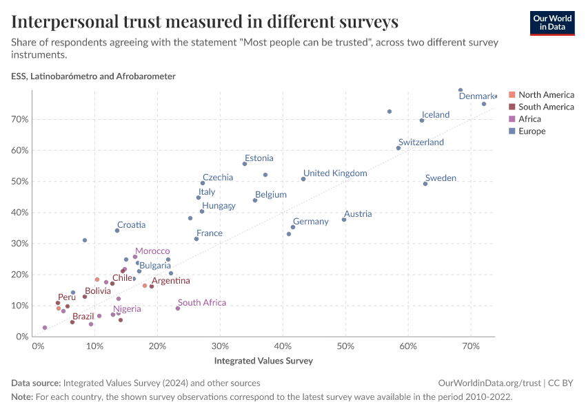 Esteban Ortiz-Ospina, Max Roser, and Pablo Arriagada (2016) - “Trust” Published online at OurWorldinData.org. Retrieved from: 'https://gdocs-bespoke-component.owid.pages.dev/trust' [Online Resource]BibTeX citation