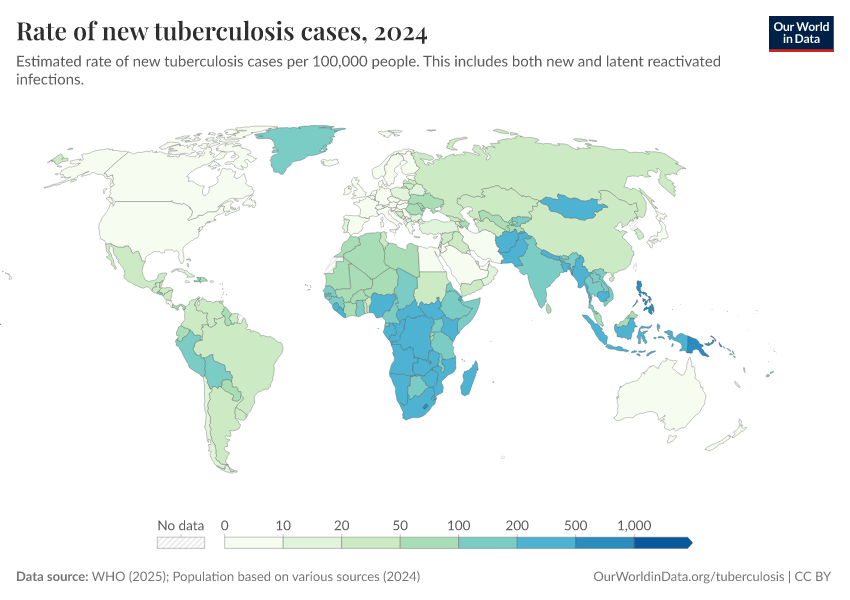 Saloni Dattani, Fiona Spooner, Hannah Ritchie, and Max Roser (2023) - “Tuberculosis” Published online at OurWorldinData.org. Retrieved from: 'https://gdocs-bespoke-component.owid.pages.dev/tuberculosis' [Online Resource]BibTeX citation