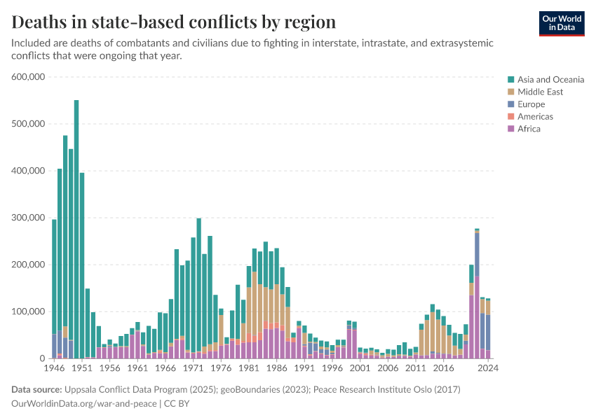Bastian Herre, Lucas Rodés-Guirao, and Max Roser (2024) - “War and Peace” Published online at OurWorldinData.org. Retrieved from: 'https://gdocs-bespoke-component.owid.pages.dev/war-and-peace' [Online Resource]BibTeX citation